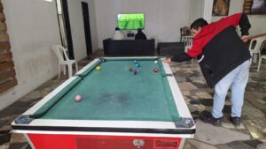 ✅ Lazer e Conforto: Aproveite nosso salão de TV de 75 polegadas, piscina, mesa de sinuca, pebolim, jogos de cartas e videogame. Todos os quartos possuem banheiro privativo.